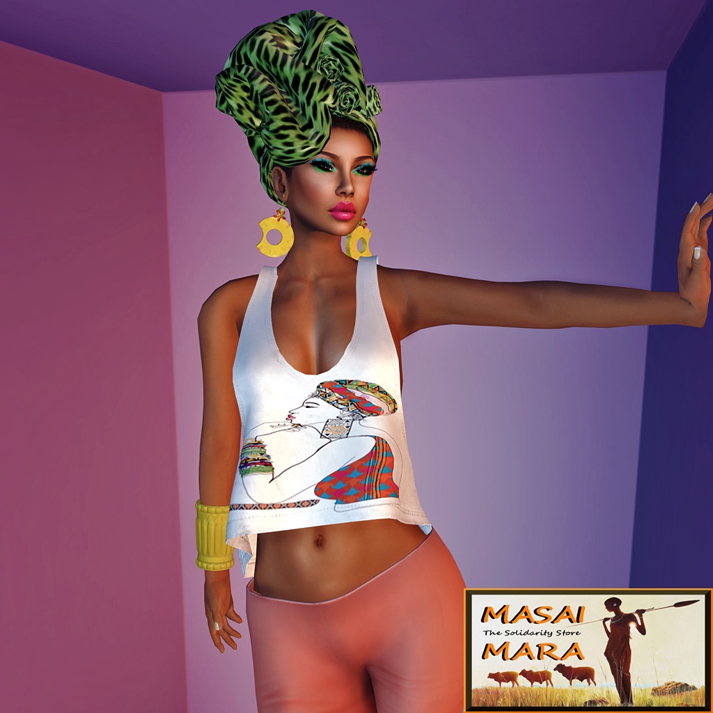 I love casual styling! It gives me a chance to play with my accessory collection to display the mood I am in. Chic Zafari Mara T-shirt for Masai Mara is the perfect edition to my casual wear! Its simple fit and ethnic design is a perfect match for the ethnic accessories in my wardrobe. If you are looking to add a little ethnic touch to you SL wardrobe (and donate to a worthy cause at the same time), this is the shirt for you!