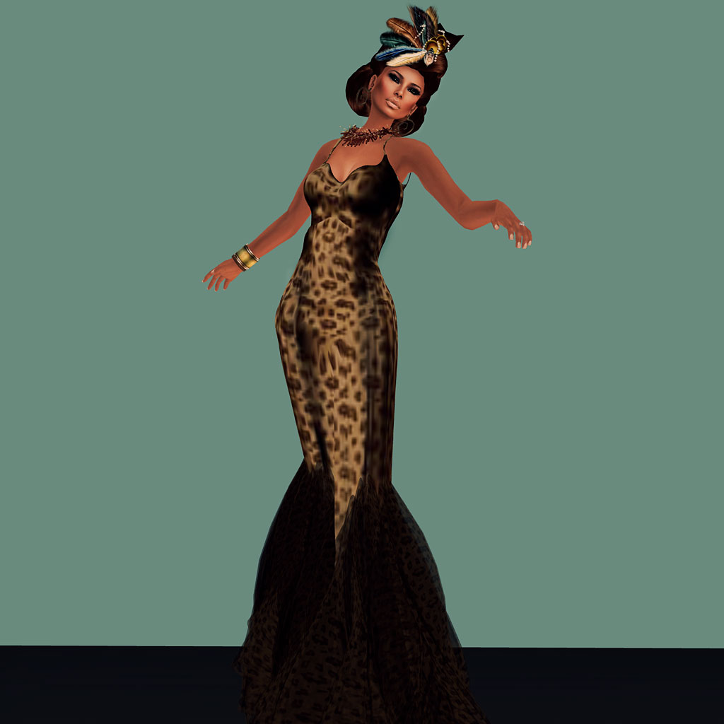Dress: Liv-Glam Summer 2012 Vintage Silk Gown (Leopard Print chosen on Mesh Hud)