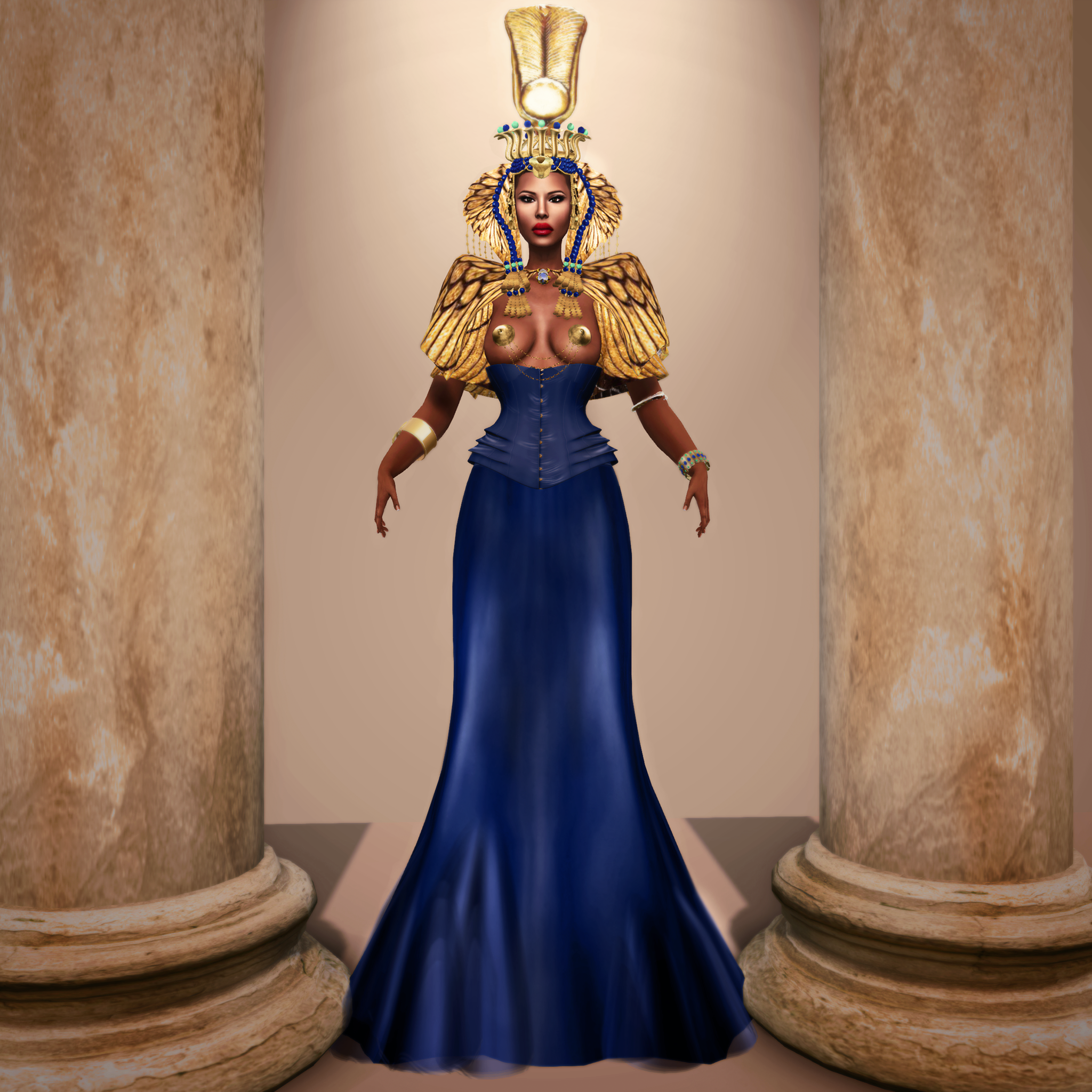 Cape, Bracelet, and Headpiece: Champagne Sparkling Couture Cleopatra (National Costume for MVW Egypt 2014)